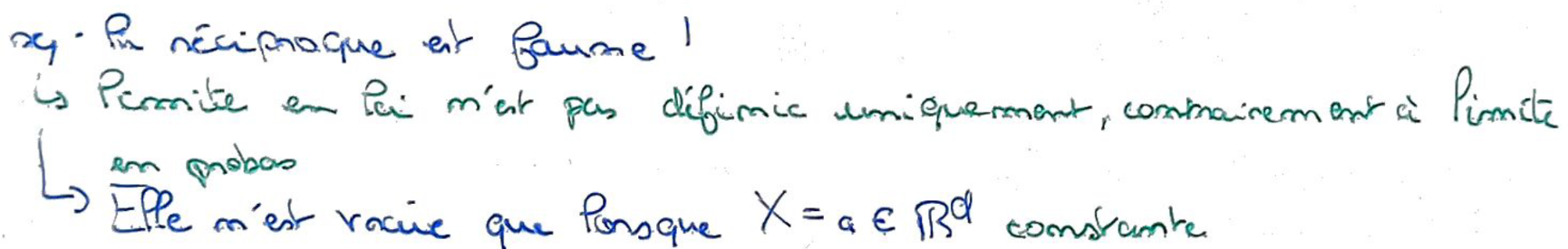 - si \(X=a\in{\Bbb R}^d\) est une constante, alors la convergence en loi entraîne la converge en probabilité