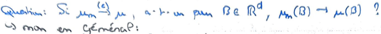 (théorème de Lévy) : on a la convergence ponctuelle des Fonction caractéristiques : \(\forall \xi\in{\Bbb R}^d,\Phi_{X_n}(\xi){\underset{n\to+\infty}\longrightarrow}\Phi_X(\xi)\)