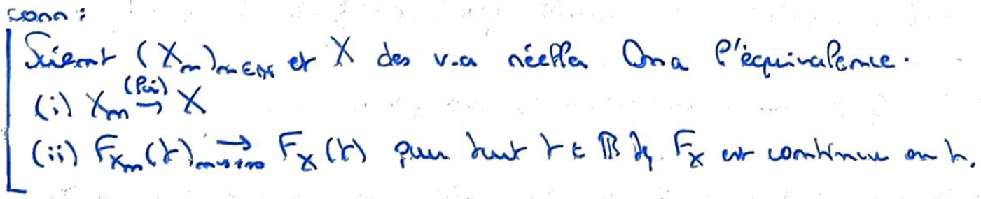 - dans le cas continu, \(p_n(x)\overset{pp}{\underset{n\to+\infty}\longrightarrow} p(x)\) entraîne la convergence en loi
