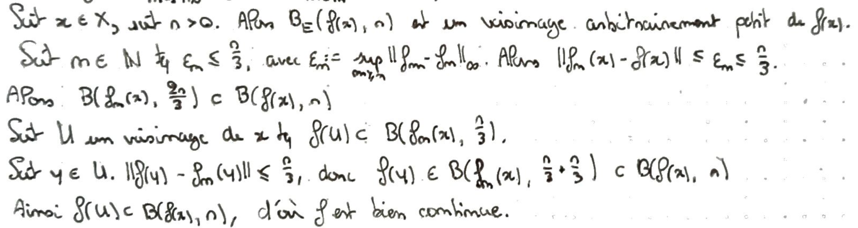 On montre que la limite est continue en montrant que les images d'éléments proches sont proches (via des boules).