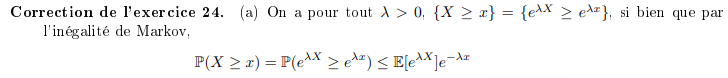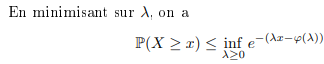 Utiliser que \(x\mapsto e^{\lambda x}\) est strictement croissante pour appliquer l'Inégalité de Markov.