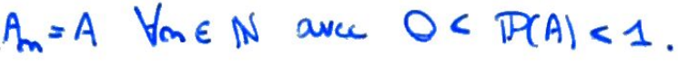 Recto: Donner un contre-exemple du lemme de Borel-Cantelli 2 où on n'a pas l'indépendance.