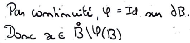 Par continuité, \(\varphi\) est également l'identité sur la frontière de la boule, donc \(x\) est à l'intérieur de celle-ci.