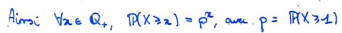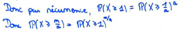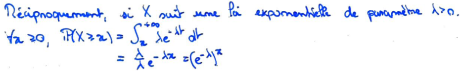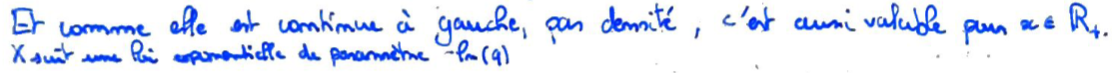 Par continuité à gauche et densité, c'est valable dans \({\Bbb R}^+\) tout entier en \(X\) suit une loi exponentielle.