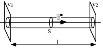 $$V_A-V_B=RI\qquad \text{avec }R=\frac{L}{\gamma.S}$$
