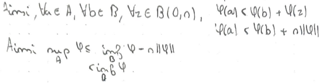 Cette séparation peut être ramenée à \(B\) par linéarité de \(\varphi\), ce qui donne le résultat voulu.