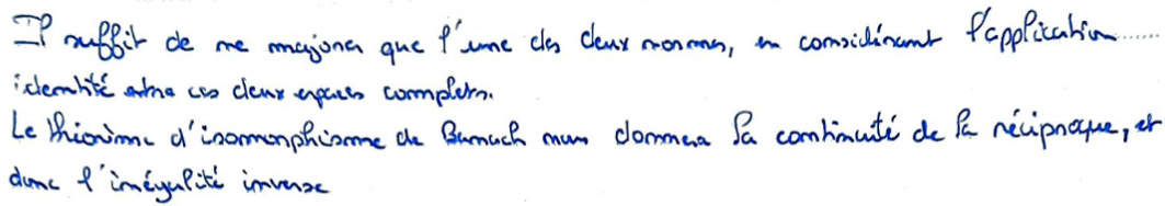 On veut montrer que l'identité entre la norme \(N\) et la norme \(\lVert\cdot\rVert_\infty\) est continue par le Théorème du graphe fermé.