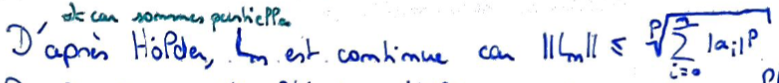 D'après l'Inégalité de Hölder, \(L_n\) est continue par majoration de la norme (on peut l'appliquer sans soucis puisque les sommes sont partielles).