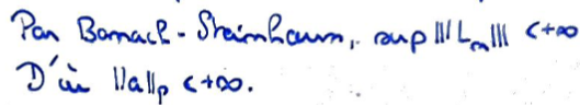 Le Théorème de Banach-Steinhauss nous donne le fait que les \(L_n\) sont en fait uniformément bornés, ce qui donne que \(\lVert a\rVert_p\lt +\infty\), et donc que \(a\in l^p\).