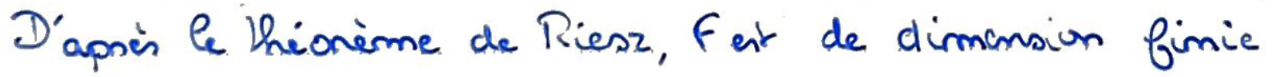 \(F\) est de dimension finie d'après le Théorème de Riesz.