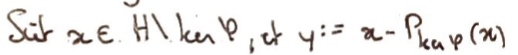 On a alors la Projection orthogonale sur \(\ker\varphi\), et on peut définir \(y\) le vecteur correspondant à la différence entre \(x\) et sa projection.