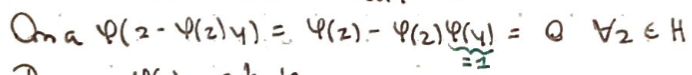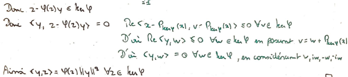 Pour \(z\in H\) quelconque, on a alors \(\varphi(z-\varphi(z)y)=0\).