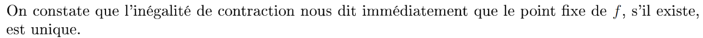 Unicité du point fixe donnée par inégalité de contraction.