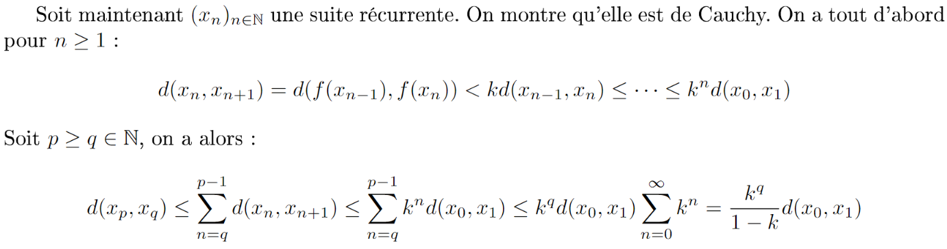 La suite est donc de Cauchy, et donc converge dans \(E\) complet.