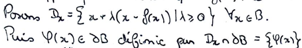 On définit l'ensemble des translations de \(x\) par \(\lambda(x-f(x))\), avec \(\lambda\geqslant0\), qu'on intersecte avec la frontière de la boule unité pour avoir \(\varphi(x)\).