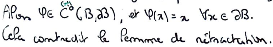 Alors \(\varphi\) n'a que des points fixes sur la frontière de la boule unité, ce qui contredit le Lemme de non-rétractation.