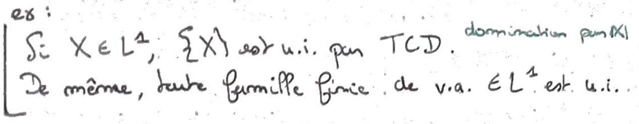 - si \(X\in L^1\), alors l'ensemble des Espérance conditionnelles \(\{{\Bbb E}[X|{\mathcal B}]\mid{\mathcal B}\text{ sous-tribu de }\mathcal A\}\) est u.i.