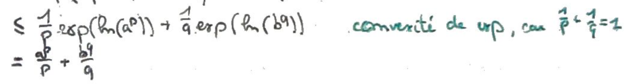 On utilise la Convexité de \(\exp\) pour avoir l'inégalité.