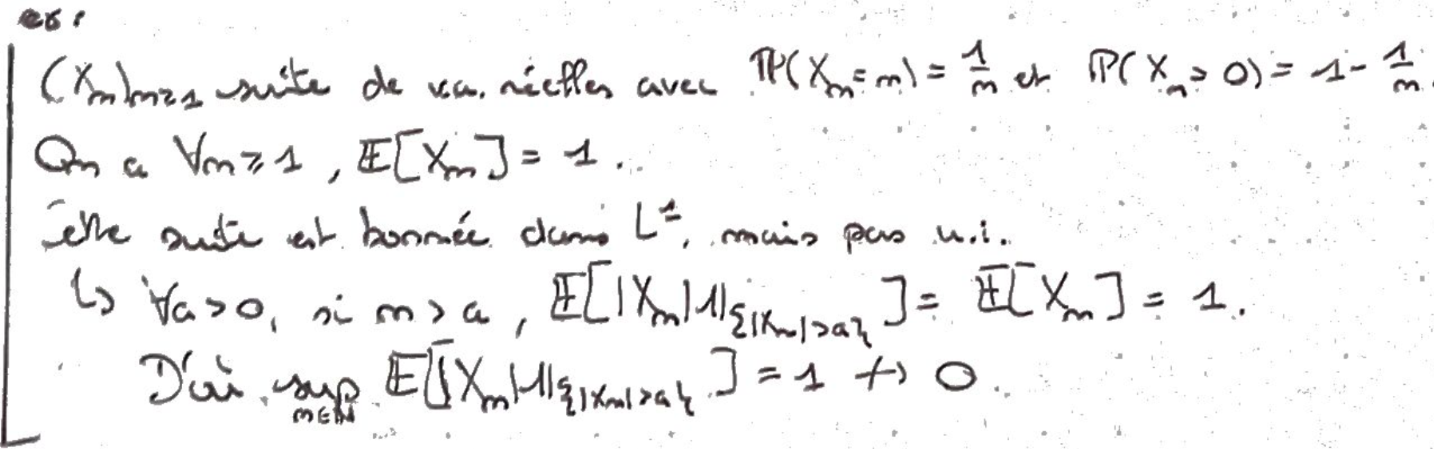Recto: Donner un exemple de famille bornée dans \(L^1\), mais qui n'est pas u.i.